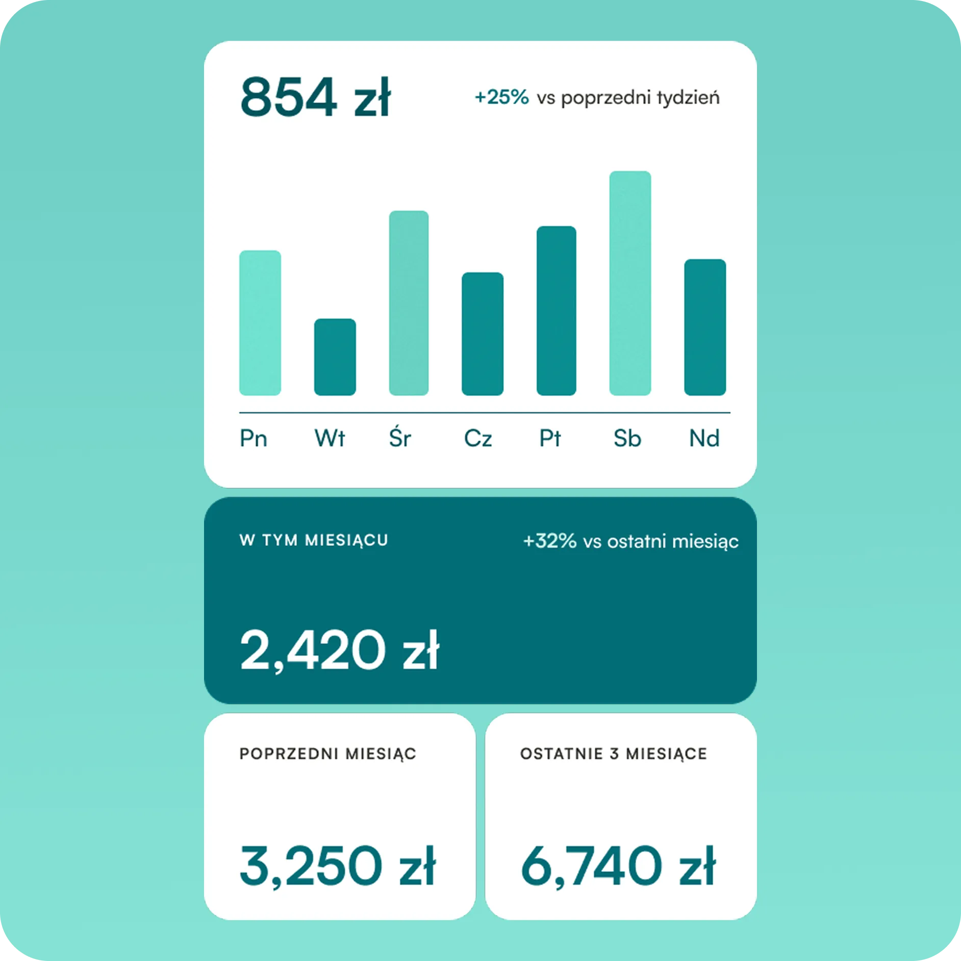 Działasz w modelu subskrypcyjnym z niską stałą opłatą i elastyczną prowizją, która dopasowuje się do sprzedaży, z pełną kontrolą nad płatnościami.